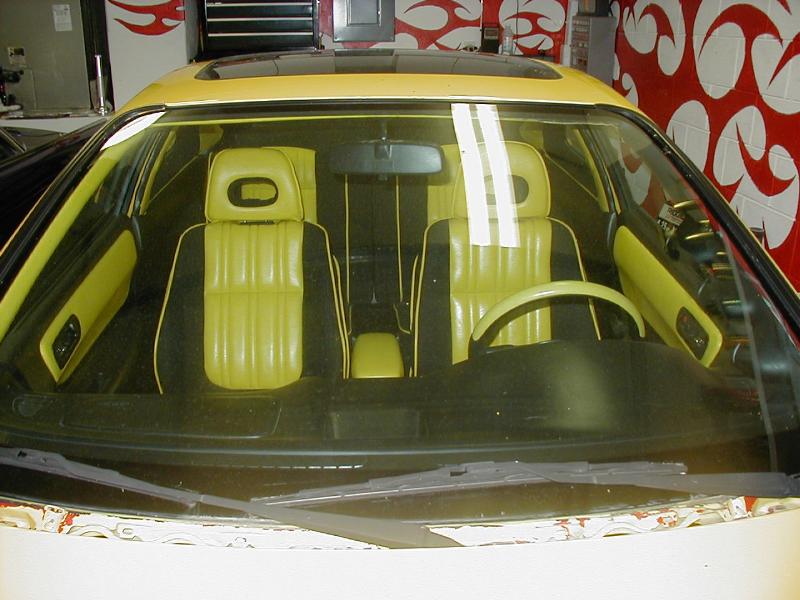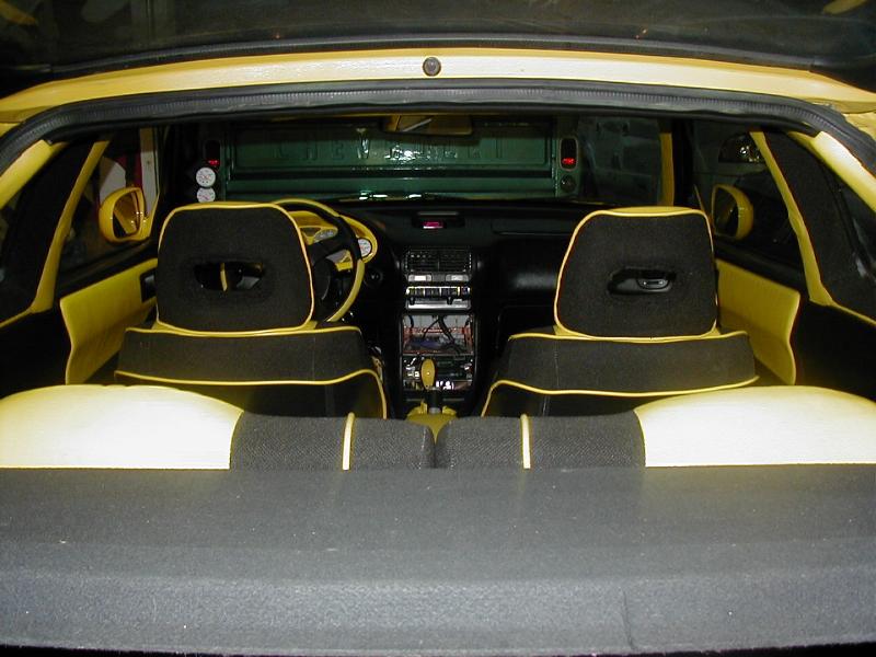 yellow leather w/black tweed throughout. auto meter guages.hks evc. and hks turbo timer.