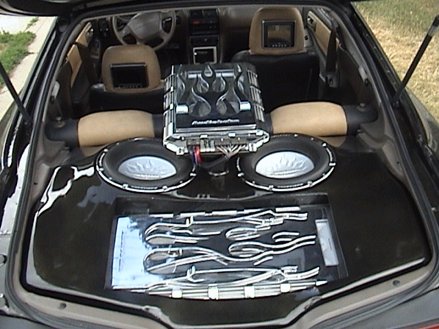 all custom audiobahn 2000 wat system 3 monitors 2 12" subs 2 amps just take a look at the pics custome inclosure