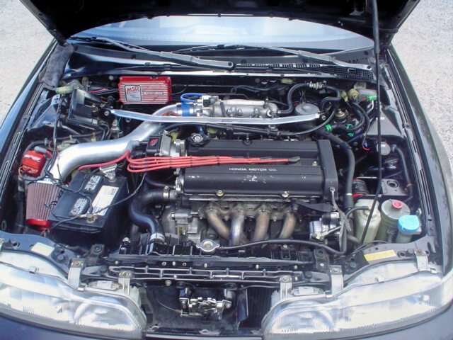 totally built motor with 10.5-1 SRP pistons,eagle rods,STR block gaurd,DH-racing headwork including port and polish,3angle valve job,portmatched intake manifold,RPM 68mm throttle body,OBX header,b&m fuel pressure regulator with gauge,all aluminum cold air intake with k&n,darkstar adjustable cam gears,STR cams,crv flat valve coverall prothane polly mounts,exedy stage 2 clutch kit,short shifter,high performance axles,MSD ignition system,crossed drilled and diamond slotted rotors and AEM pads,converted to obd1,p28 ECU with hondata s100,dropzone coilovers,tokico blues,rear upper and lower strut tower braces,front strut tower brace,huge swaybars,apexi full exhaust.