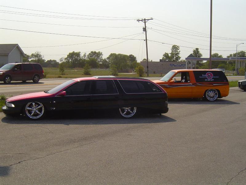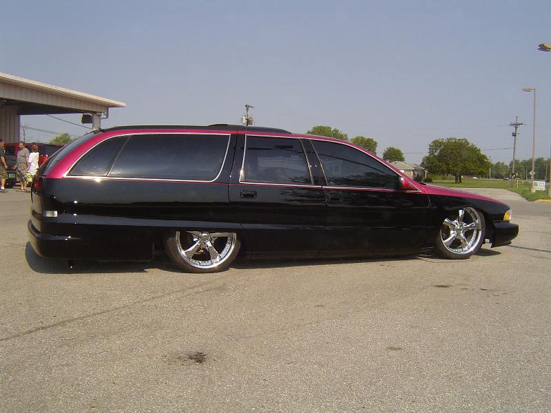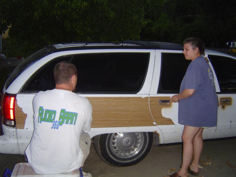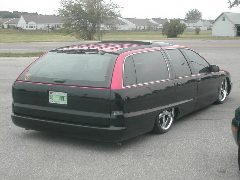 Shaved door locks, shaved antenna, shaved tail lights, molded roll pan, Removed all molding for wood grain