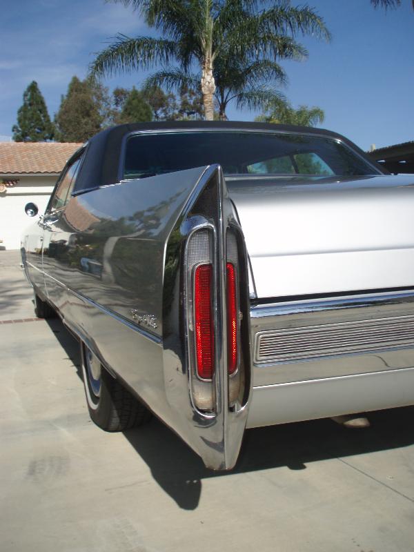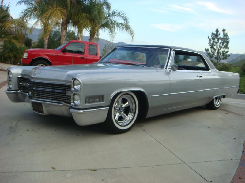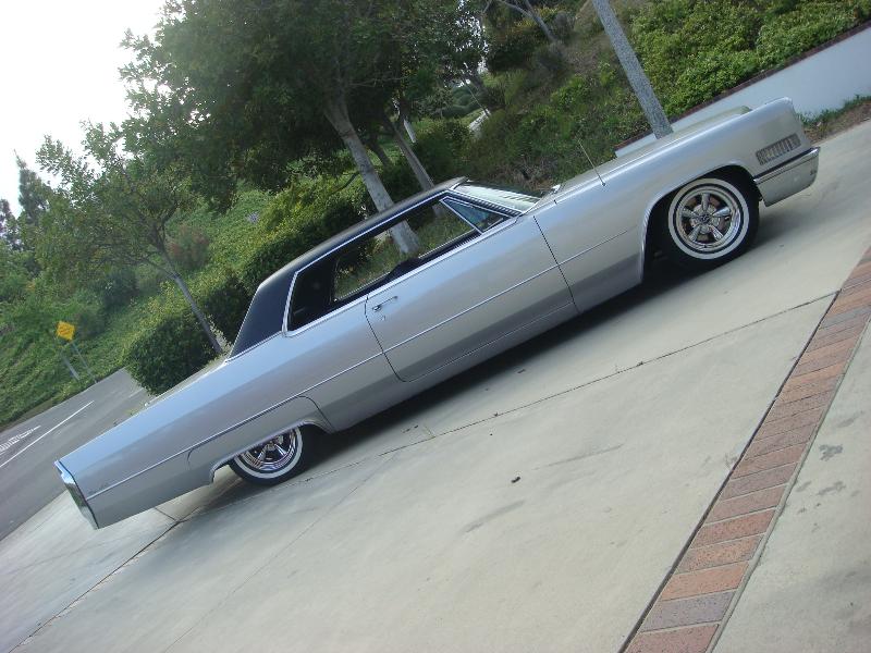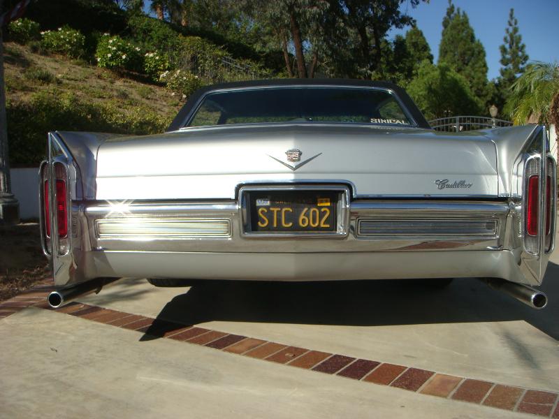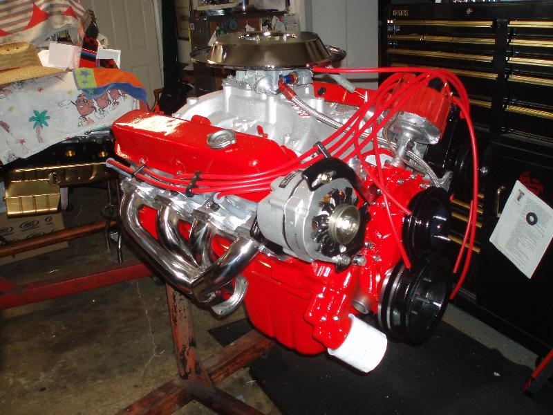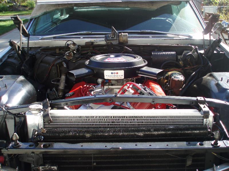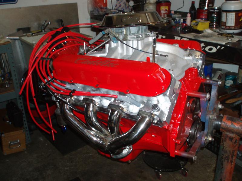 500 cubic inch Cadillac from a '70 Eldorado. 2" dual exhaust with bellflower tips
