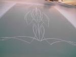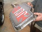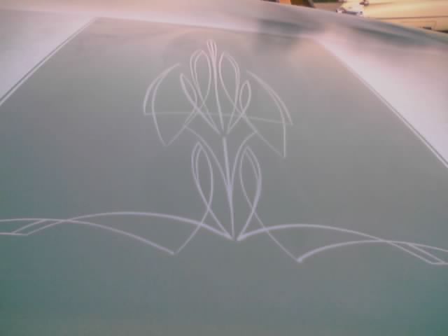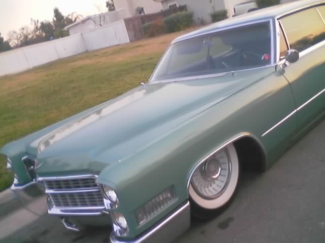 metallic green stock, except for the roof, it has an overlapping, panel fade, lace job with some pinstriping done by my roomate josh.