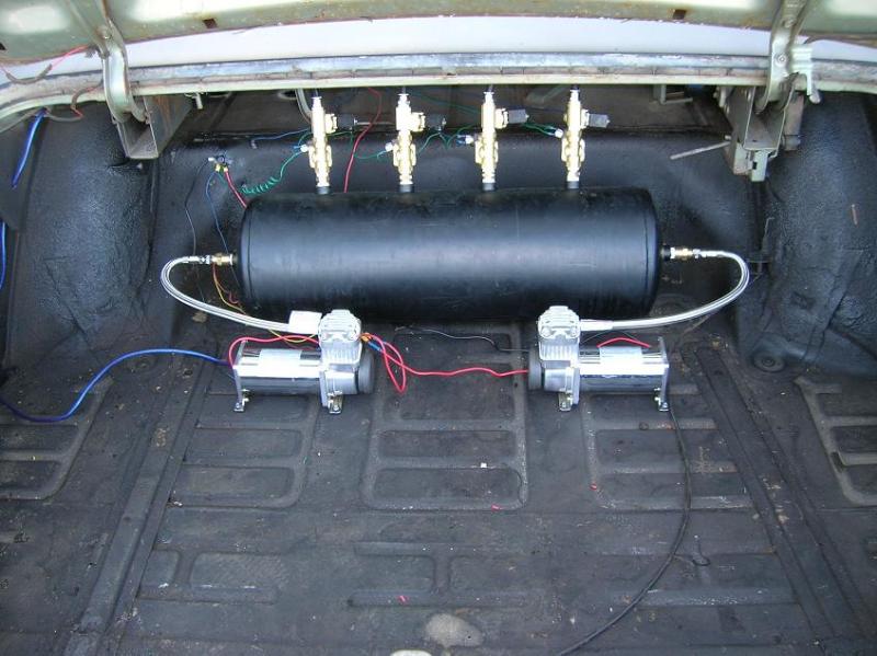 2600 firestones, 9 gallon tank, 2 viair 380s, 8 1/2 valves, 7 switch box