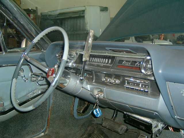 stock blue, with a mexican blanket and yes it was in the car when i bought it so im leaving it, it also had a cool "BUD on tap" shifter.