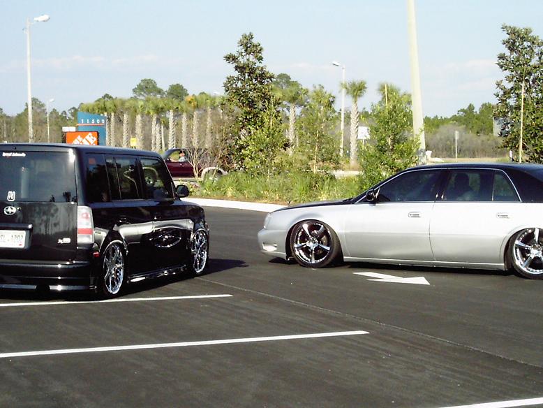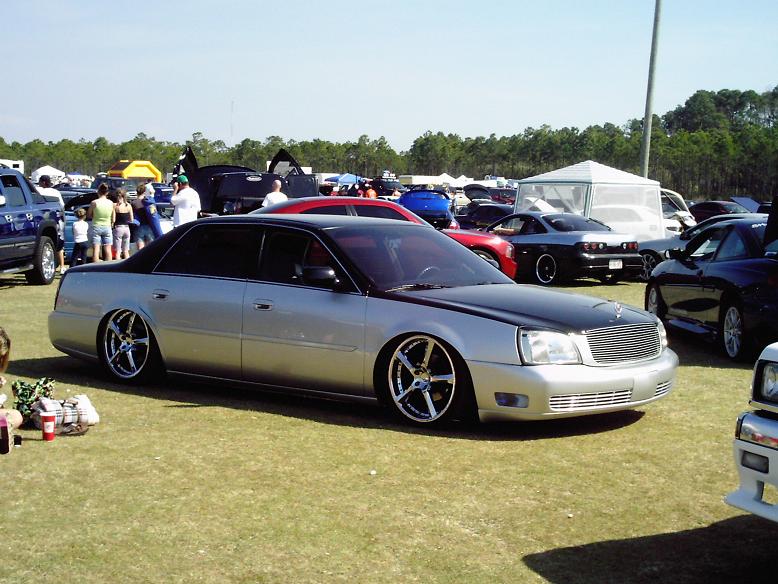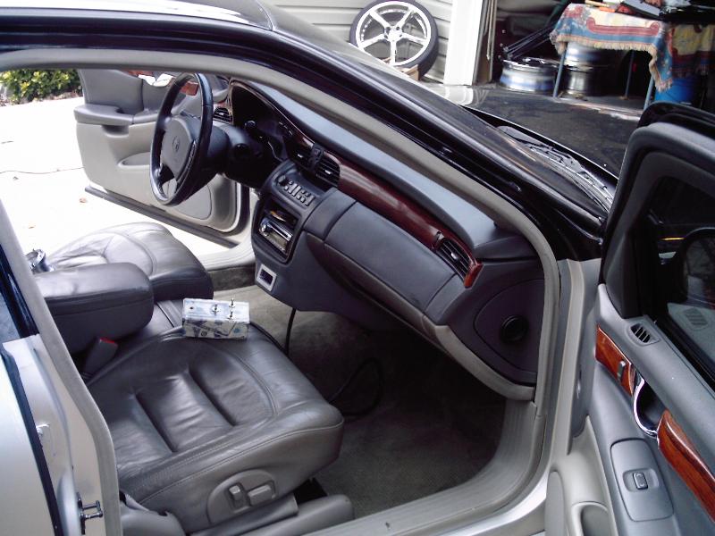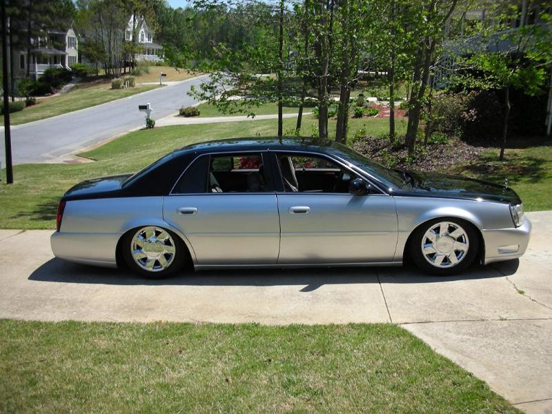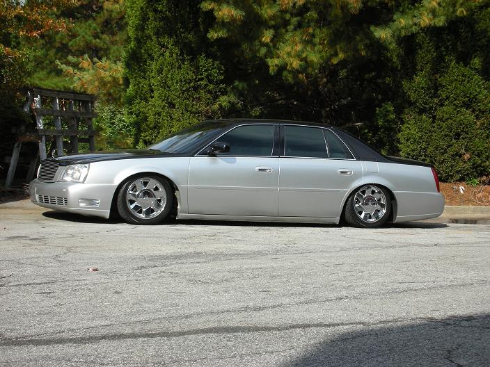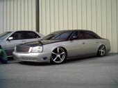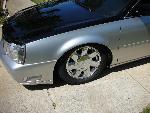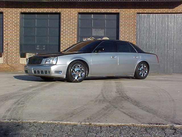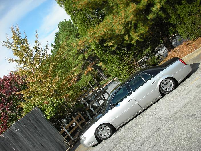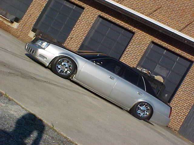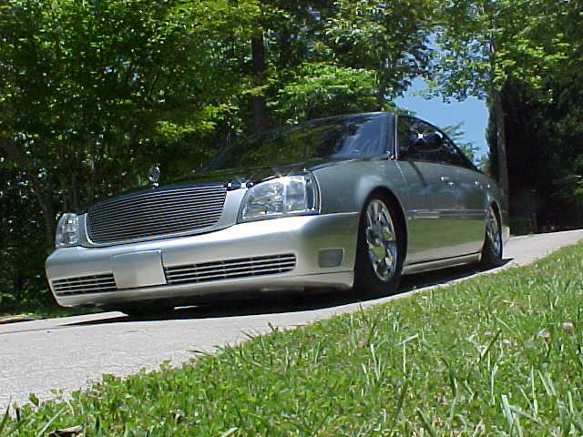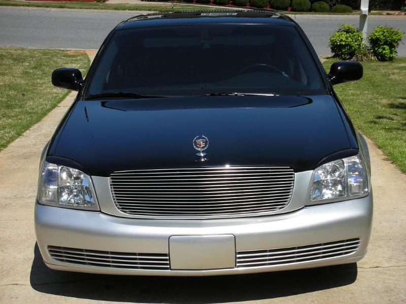 All the body work done and all the texturing at the bottom of the car was smoothed and painted thanks to Jerry's auto body (770-374-9332)and the whole car was repainted Galaxy silver and black 2 tone with billet grill new style caddy emblem on the hood, all the orange was pulled out of the headlights. tint