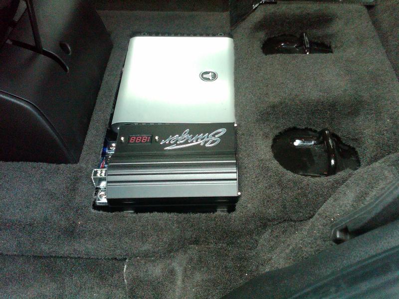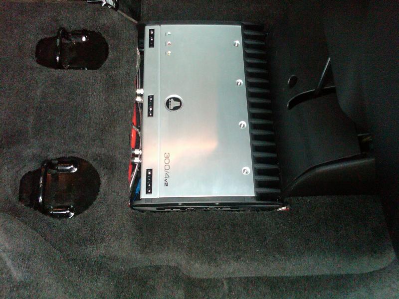 Kenwood head unit, tv's in headrests, jl audio amps, 300/4 running 2 sets of xr components, hd750/1 on 1 12w6,