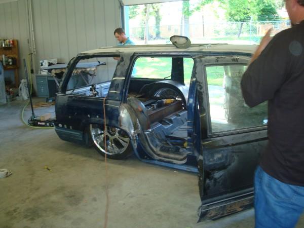 shaved everything, door handles, tailights, antenna, roof rack. 97 Cadillac seville third brake light mounted in gate, tag box in gate