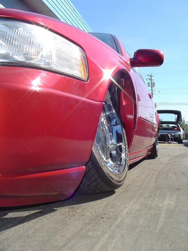 Custom one-off custom dual tubular A-arm with crazy remote bag mounts on the lower A-arms built by mothergoosecustoms.com, took out stock macpherson struts, narrowed rear suspension all done by mothergoosecustoms.com