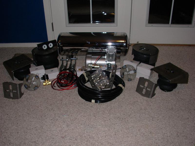 complete aim air ride kit with half inch valves and lines. 10 gal tank