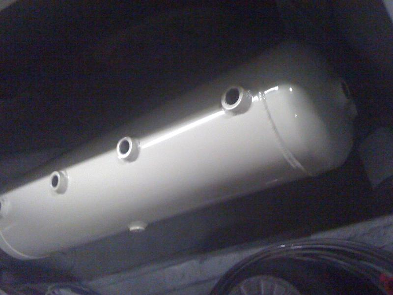 full air suspension. 2 5 gallon tanks,4 380 comps, half inch line 3/8th valves,one off billet rocker switch box, 2 yellow top optima batterys with 2 billet battery trays, slam bags all 4 corners,train horn,nitrogen tank,air tanks and water traps powder coated cream color