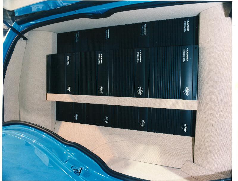 Blaupunkt demo vehicle: (12) 15" subs, (16) amps, (1) 10" sub, (3) pair of 6.5s