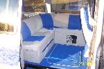 captains buckets in front,w/ sectional sofa in rear.Tweed and neons by Ryan Craighead
