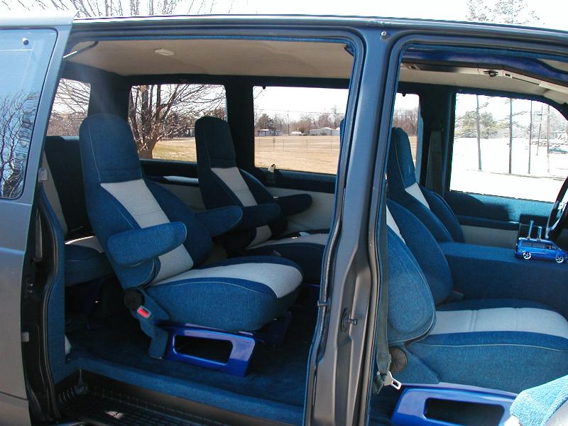 everything tweeded or painted. Tweed is navy blue and beige. The headliner and door panels have flames.