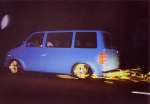 Shaved door handles, gas door rear tag box, slider door seam, finished with sickens porshe blue, cleared with blue, white, purple, silver, and rainbow pearls. Installed a phantom grille, and clear tail lights