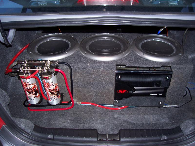jvc head unit w/cd,mp3. 3 12" P2 rockford fosgate sub woofers power by a 4ch T8004 power rockford fosgate amp. 2- 6.5" power 2-way rockford fosgate in rear deck powerd by a 2ch P2002 rockford fosgate. 0 gauge power wire w/ two 1f rockford fosgate capacitors.