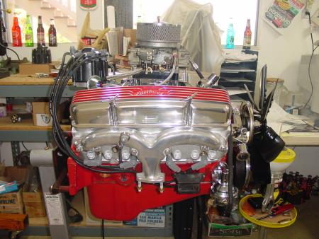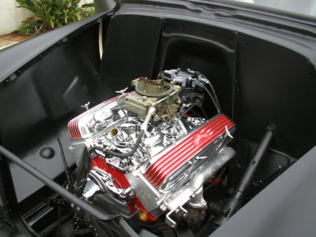 350/350, Cadillac air cleaner, vintage finned Edelbrock valve covers, and flame-thrower exhaust. ~SOLD~