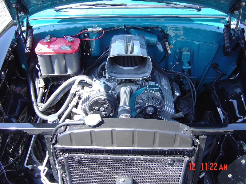 350 CHEVY WITH ALL THE GOODIES . BIG CAM THAT MAKES THE FENDERS SHAKE WHEN YOU SET AT THE STOP LIGHTS . SOUNDS REAL HEALTHY.