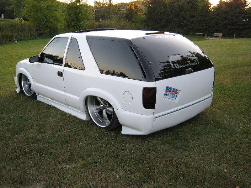Custom rear roll pan, relocated license plate in the tail gate, custom front grill with the bowtie removed, Billet antenna, 5% tint over stock tint in the rear and 20% up front, shaved emblems,hood pissers,antenna , painted trim around rear windows and cowl, clear marker lights, snoma hood, clear taillights
