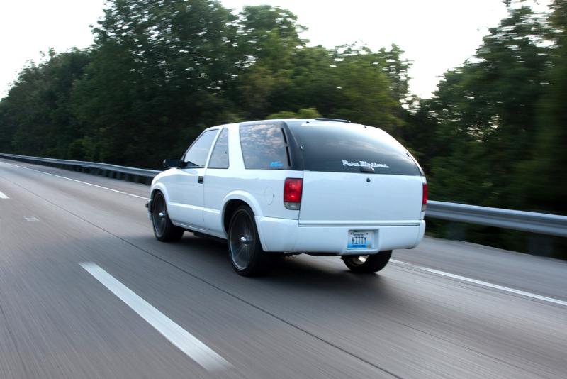 Billet Grille. Step Shaver Kit. Shaved Antenna/Hood Squirters/Roof Rack. White with Triple Stage Purple Pearl.