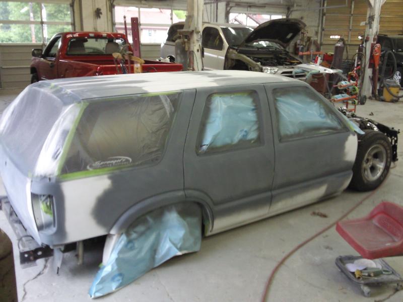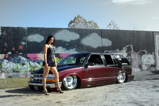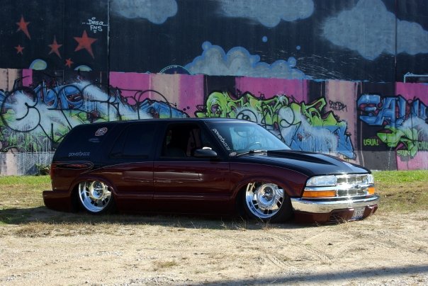 stock 4.3 with intake full magnaflow cats and muffler exiting in stock location.plus stock inside ht-a/c modified out side a/c works great