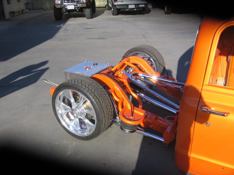 raised front crossmember 2.5 reworked steering made motor and tranny mounst for big block with 100% stock floor. art morrison notch custom 4 link and bag mounts pro chrome shocks rides like a cadillac all work by custom shop porterville ca