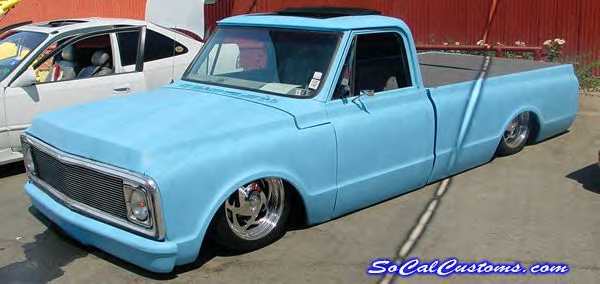 shaved handles, gas filler, cowl vents, side markers, antennae frenched into back of cab,shaved tailights, tailgate handle and leds between tailgate and rollpan
