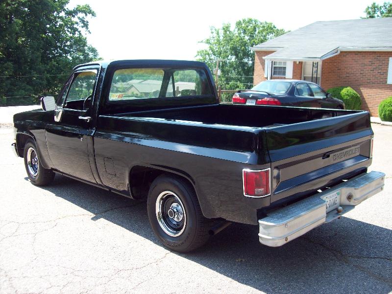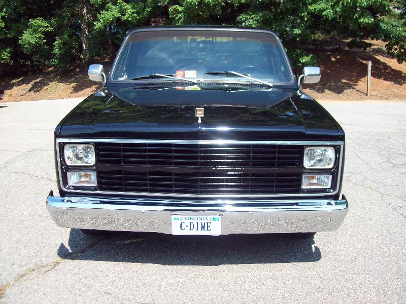 Shaved molding, fender trim and rock guards, painted grill and bezels to match body, steel rollpan from LMC Truck, crystal clear headlamps and parklamps