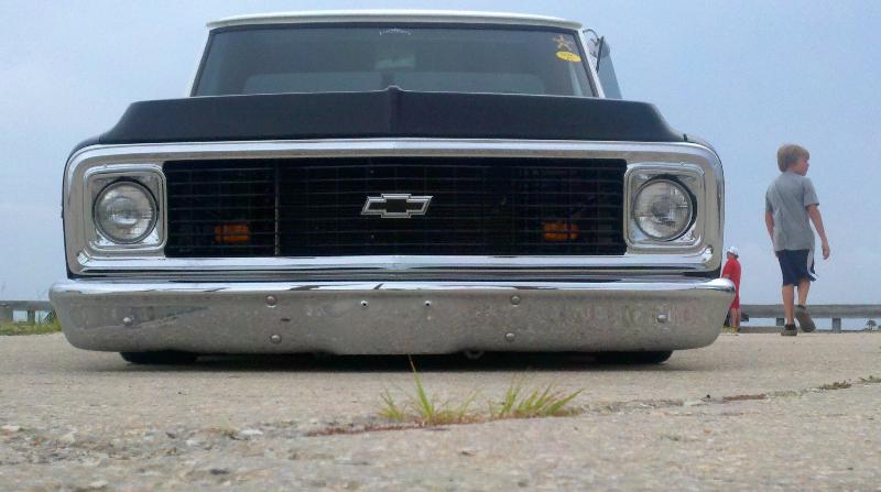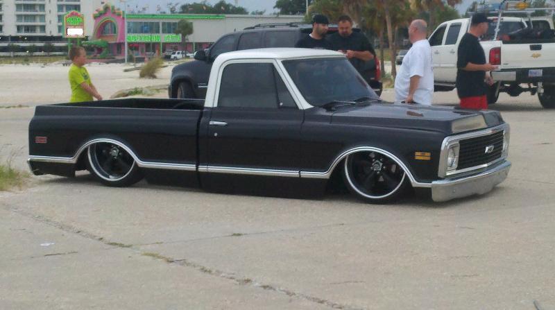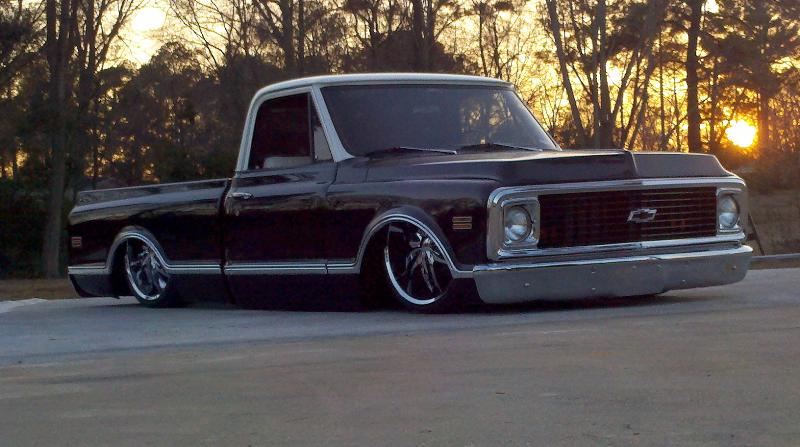 Porterbuilt Streetrods cross member, Air Ride control arms, RE-7 Slams all around, 3/8 Air Lift Chrome valves, custom 4-Link and bridge.