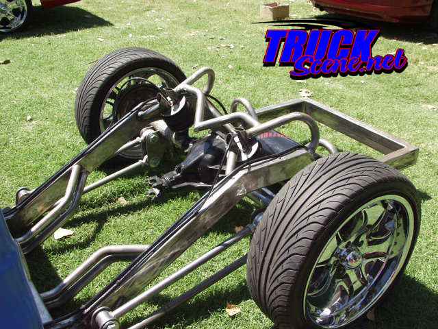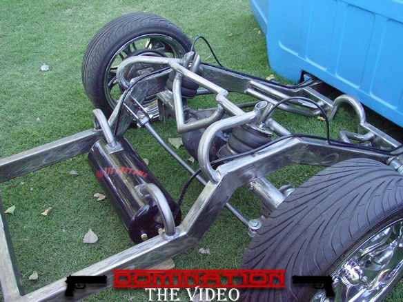 2 1/2in Z section, kustom backhalf and bridge, parallel 4 link, 4 2600 firestone bags, 3/8 valves and line 6 gallon tank. ALL WORK DONE BY ME AT EVIL EYE KUSTOMS in FRESNO CALI (559)441-1710