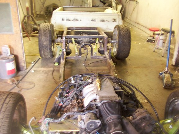 Frame plated from firewall back. Back halfed. lays rocker Cut and rolled pinch 3" Z , 1 3/4" channel.