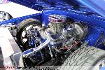 350CI GM V8 Vortec engine with holly carb headers dual flowmaster exhaust 3.73 gears with limited slip and a turbo 400 trans. Billet Specialties valve covers, Chrome Alternator and water pump. Chrome Kool Felx. Engine Block, tranny and pulleys all painted House of Kolor True Blue Pearl.