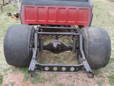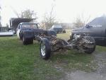 2" drop spindles, Rear notched with adjustable ladder bars with coilovers. 9" Ford with 4.56 gears. Rear disc brake conversion.