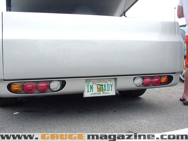 SHAVED: DOORS, LOCKS, MIRRORS, EMBLEMS, MARKER LIGHTS, TAILIGHTS, SMOOTHED TAILGATE, ANTENNA. MOLDED IN REAR ROLL PAN WITH TOYOTA SUPRA TAILIGHTS AND RECESSED TAG. SEBRING SILVER METALLIC PAINT WITH BLUE2GREEN PEARL GHOST FLAMES. WHITE NEON UNDERNEATH