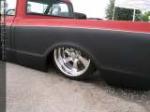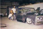 Bagged, fast valves, all stainless hardline, Lifted front crossmember and bag mounts to layframe, the cab is not bodydropped, The truck lays Rockers, the frame is not cut down, stock floor, lowered cab mounts, tunneld cab for trans. Back is 2-linked