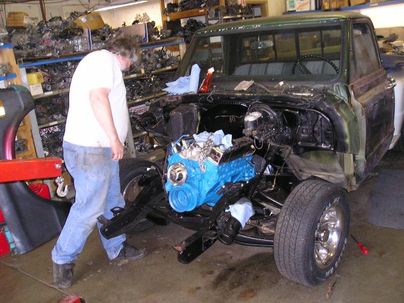 remove the stock sraight 6 and re placed with rebuilt 350