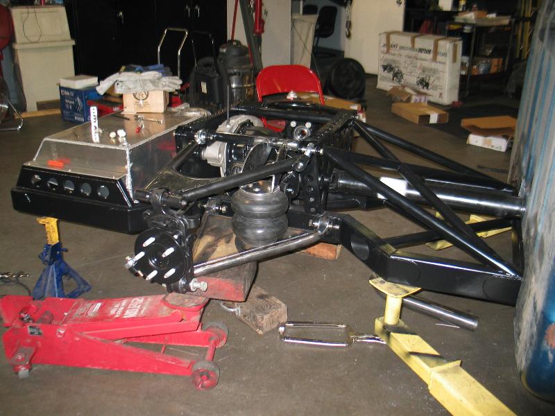 We built the chassis using 2x4-inch.120 wall tubing. The xmembers and ars are 4130 chromoly