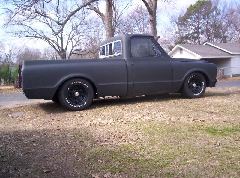 Flat Black, shaved doors, stake pockets, emblems, molded rollpan