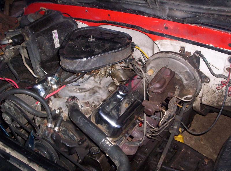 Chevy 454 big block, bored .40 over, Weiand intake manifold, with a 750 cfm edelbrock carb, billet distributor, hooker headers, chrome dress-up kit, K&N air filter, Optima red top, 69 Chevelle cam, roller rocker arms