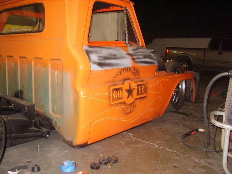 in the process of a 3 inch stock floor bodydrop,mostly primer right now, shaved door handles-gas door-cowl-antenna-mirrors, bondo and more primer