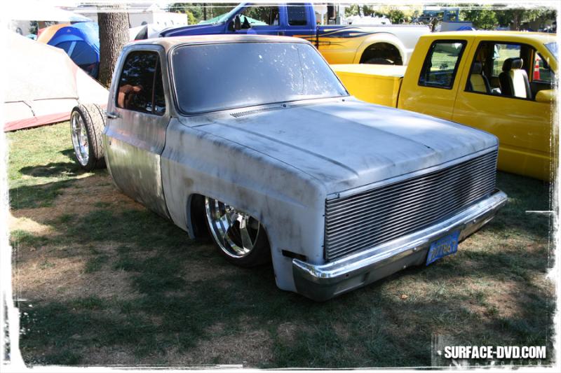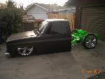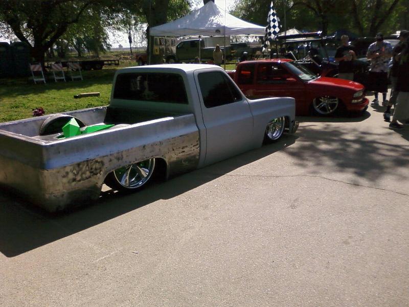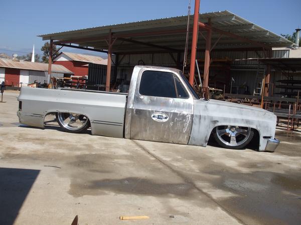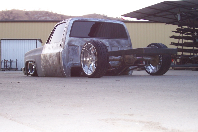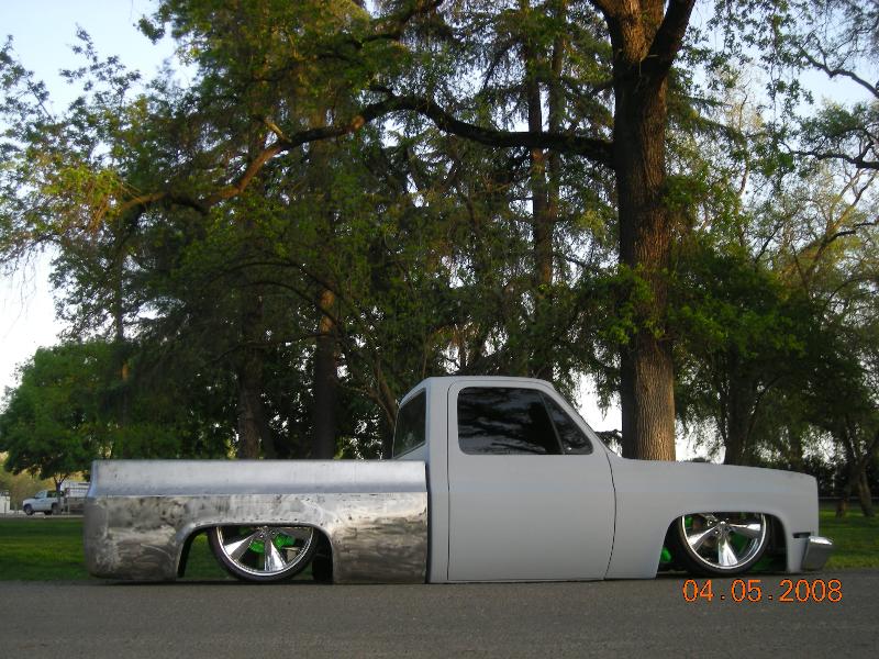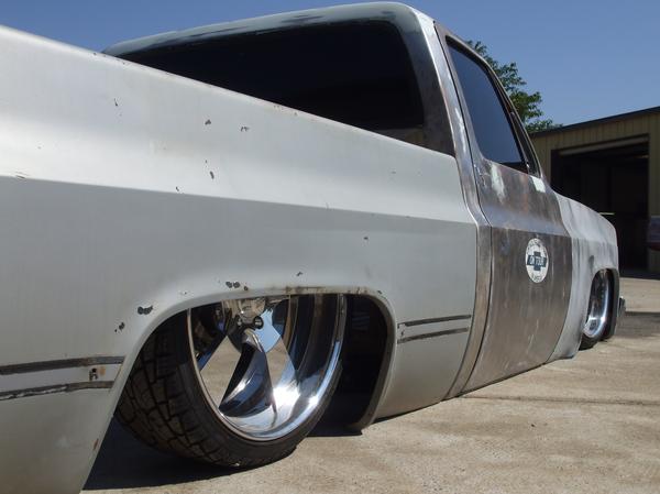 BodyDrop on 22's, shave it all up, paint frame shave firewall, sheetmetal bed, slap crate 350 in it you know just re-do her totally. Keep checking in for updates.