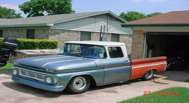 bagged, 2link with wishbone tubbed, narrowed ford 9" Zed frame 4-1/2" 81 c10 front suspension, power steering,brakes