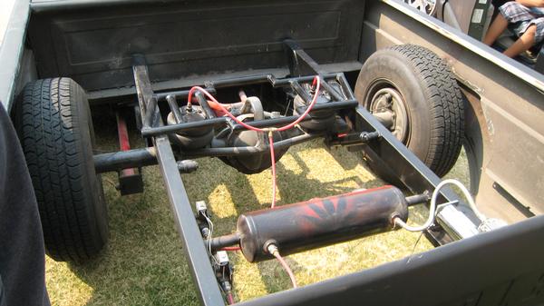 custom 2 link,with Chevy bowtie tube work and z style cut frame in rear.