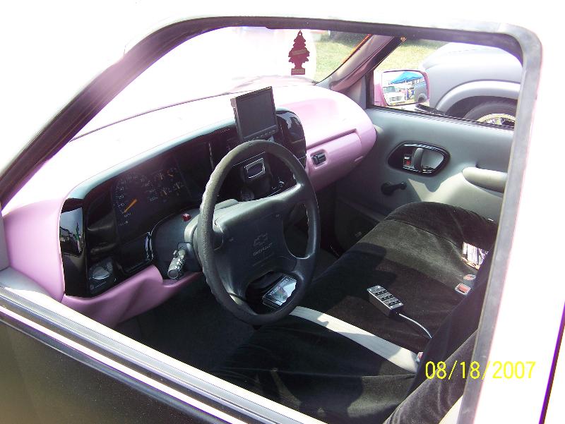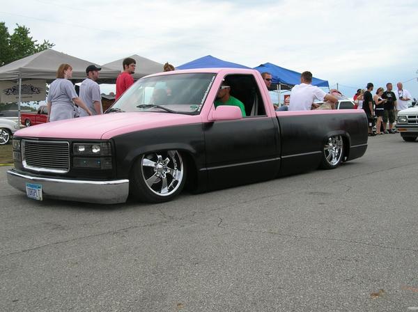 GMC front end conversion, Blacked out headlight, turnsignal, and sidemarker housings, Shaved antena, door handles, tailgate handle, 3rd brake light, and tail lights. 10" LEDs flush mounted in the tailgate. 3" bodydrop