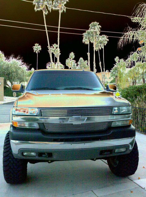 stock, debadged emblems, billet grillz, billet bow tie, amp steps, darks ass 3% TINT 50% WINDSHIELD, roll lock bed cover