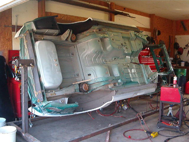 CHANGING EVERYTHING BODY IS COMPLETELY STRIPPED OF EVERYTHING AND IS ON A ROTISSERIE GETTING PREPPED FOR NEW PAINT