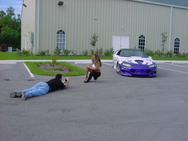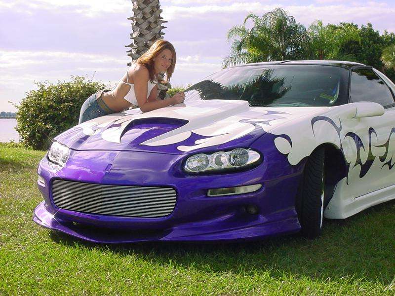 White with graphics, molded in ground effects, shaved door handles and key hole, shved body line, molded all body lines in, Erubuni front skirt, west wings grill insert, Underbody purple neons