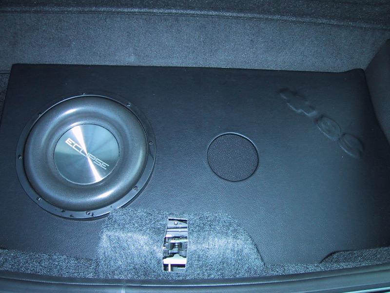 10" Eclipse Titanium Cone, custom ported inclosure (deeper bass), custom black vinyl cover w/bowtie and SS engraving