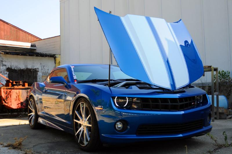 TZD Front Chin Spoiler, Bowtie Delete, custom vented fenders, GM Performance rockers, TZD rear valance with custom center exhaust, AAC LED side marker and tail lights, and Halo Super Cars Reverse Tilt Hood kit
