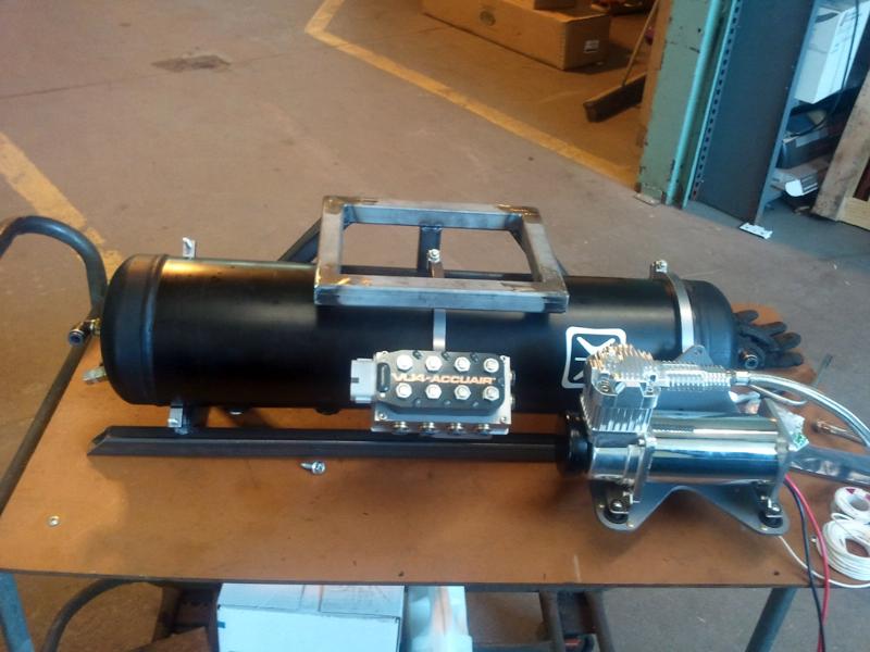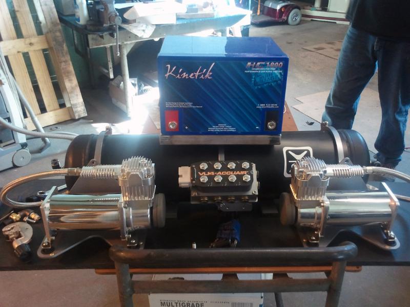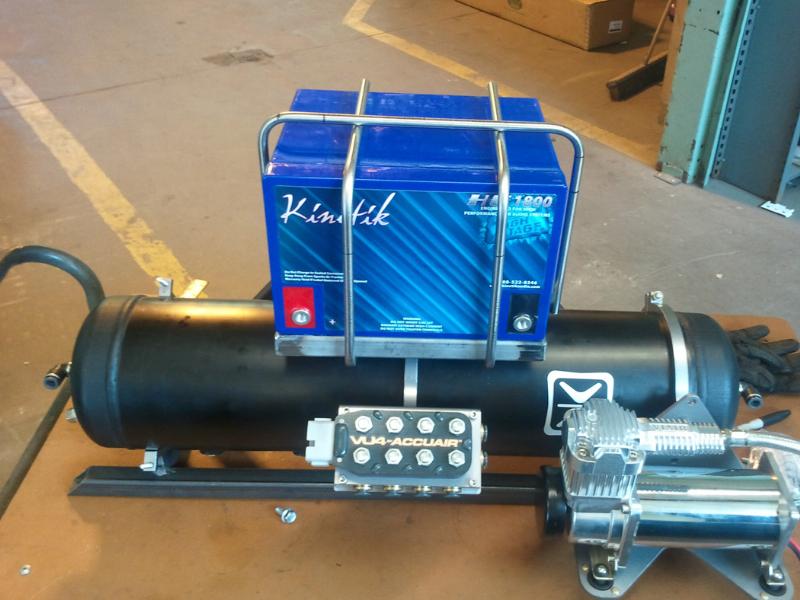 Halo Super Cars Strut Tower Brace. Air Lift struts with AccuAir E-level control system. Custom mounting bracket with eXo mount with Kinetik power cell and 1/2" stainless hard lines