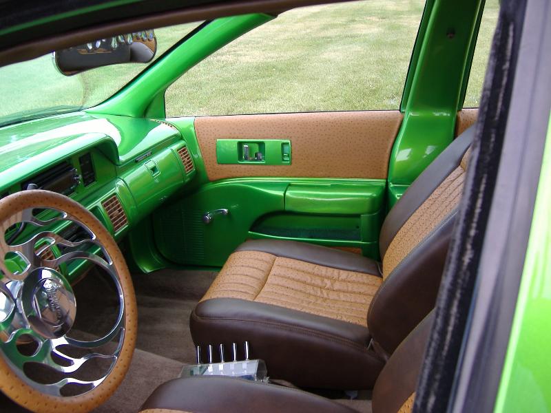 4 SS buckets wrapped in brown vinyl and tan ostrich. Everything is smootherd and painted body color.